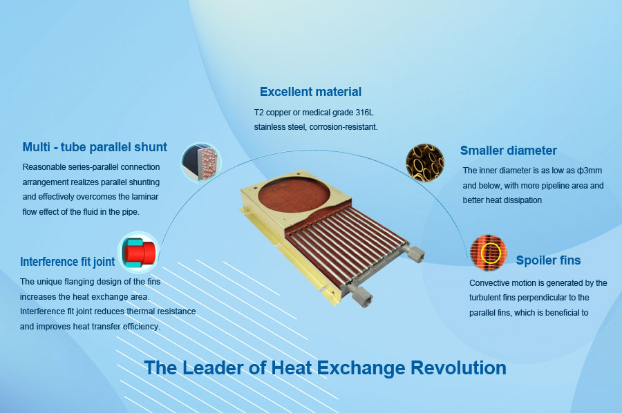 We have strong research and development capabilities of thermal management system. So we have successfully launched a series of products in different fields. Such as chillers, Copper series and Stainless steel series heat exchangers, etc. What's Special? Comparing to the traditional large size heat exchangers, small-diameter parallel flow heat exchangers shows great performance with its compact size and power heat dissipation capacity. OEM and ODM are welcomed if you don’t find what you need on our website. |